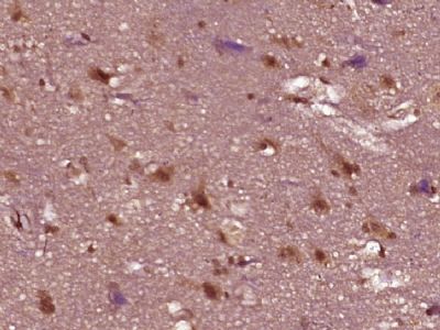 Paraformaldehyde-fixed, paraffin embedded (human brain glioma); Antigen retrieval by boiling in sodium citrate buffer (pH6.0) for 15min; Block endogenous peroxidase by 3% hydrogen peroxide for 20 minutes; Blocking buffer (normal goat serum) at 37°C for 30min; Antibody incubation with (Androgen Receptor (Ser515)) Polyclonal Antibody, Unconjugated at 1:400 overnight at 4°C