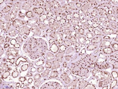 Paraformaldehyde-fixed, paraffin embedded (Human kidney); Antigen retrieval by boiling in sodium citrate buffer (pH6.0) for 15min; Block endogenous peroxidase by 3% hydrogen peroxide for 20 minutes; Blocking buffer (normal goat serum) at 37°C for 30min; Antibody incubation with (ZFPL1) Polyclonal Antibody, Unconjugated(bs-19136R) at 1:400 overnight at 4°C