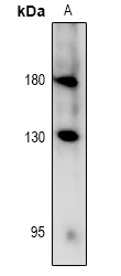 Western blot (WB) analysis of RET (Phospho-Y981) polyclonal antibody at 1:500 dilution LaneA:A375 whole cell lysate