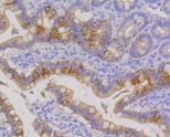 Immunohistochemical analysis of paraffin-embedded rat small intestine tissue using anti-Cytokeratin 20 antibody. Counter stained with hematoxylin.